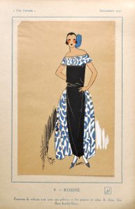Recueil factice composé de 7 planches rehaussées à la gouache sur papier calque provenant de la revue de mode Très Parisien, 14 planches de Victor Lhuer pour la maison René Sacerdote rehaussées au pochoir et légendées au verso et 6 illustrations découpées de la revue Art - Goût - Beauté. Rousseurs ou papier parfois bruni sur les planches de V. Lhuer. Illustration de la revue Très Parisien contrecollée sur le premier plat (déchirures).