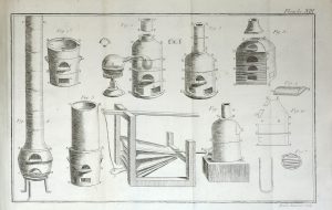 Complet des 13 planches d’instruments et ustensiles dessinées et signées par Madame Lavoisier. La première édition parut en 1789.