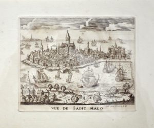 [BRETAGNE].ROSS. Vue de Saint Malo. Eau-forte (14,2 x 17 cm à la cuvette) portant l’inscription : Vue de Saint-Malo Ross pinx et linea 1647. Encadrée.
