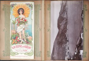 [NICE & CÔTE d’AZUR]. Album de photographies et cartes postales. Début XXe siècle. Album in-4, reliure demi-percaline verte, dos (déchiré) daté 1912 à l’encre, comprenant : • Dépliant touristique de la Côte d’Azur avec vue...
