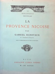 [NICE]. HANOTAUX (Gabriel). La Provence Niçoise. Avec 93 illustrations dans le texte et hors texte. Nice, Cumin frères, 1928. In-4, reliure demi-chagrin bordeaux, dos à 5 nerfs, tête dorée. Qq. frottements sur les mors, coins émoussés....