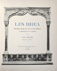 [NICE]. LABANDE (L.-H.). Les Bréa. Peintres niçois des XVme et XVIme siècles en Provence et en Ligurie. Nice, Éditions de la Société des Amis du Musée Masséna, 1937. In-4, reliure demi-vélin, pièce de titre chagrin rouille. Couvertures...