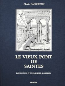 DANGIBEAUD (Charles). Le vieux Pont de Saintes. 90 illustrations et ornements de G.Garrelou. La Rochelle, Rupella, 1986. In-4, reliure éditeur toile bleue, illustration sur le premier plat. 195 pp. Édition originale tirée à 300 €x....