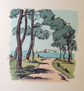 LOTI (Pierre), FROMENTIN (Eugène). Le Paysage Charentais. Pages choisies commentées et illustrées par Louis Suire. La Rochelle, La Rose des Vents, 1946. In-4, en feuillets, chemise et étui (un peu fané) de l’éditeur. 120 pp. et une suite en...
