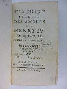 [CAUMONT DE LA FORCE (Charlotte-Rose de)] Histoire secrète des amours de Henri IV roy de Castille surnommé l'impuissant - La Haye, Mathieu Roguet, l'année courante [1736] - in-12 : 180 p.