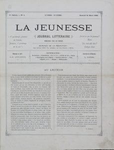 *** La jeunesse : journal littéraire. Rennes, Leroy, in-folio, du n° 1 (21 mars 1868), au n° 53 (21 mars 1869), 424 p. en continu, reliure demi-veau bleu nuit glacé, dos à nerfs, titre et fleurons dorés, double filet doré aux plats, tête...