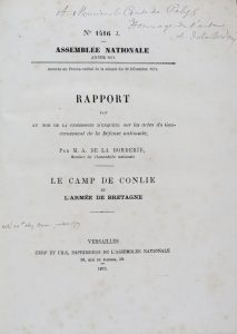 *** LA BORDERIE (A. de). Le camp de Conlie et l'armée de Bretagne. Versailles, 1873, 2 parties en un vol. in-4. Rapport fait à l'Assemblée nationale au nom de la Commission d'enquête sur les actes du gouvernement de la défense nationale, bien...