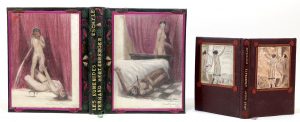 Exemplaire enrichi de 2 dessins originaux en couleurs au crayon gras, signés de Fernand Hertenberger, avec un envoi autographe de l’artiste à René Alouis (montés aux plats), d’un croquis original à la mine de plomb de Fernand Hertenberger (monté au premier contreplat) et de 2 calques originaux à la mine de plomb de Fernand Hertenberger. Par ailleurs, chaque gravure est accompagnée de son bon à tirer signé par l’artiste, d’une suite du 1er état, ainsi que de plusieurs épreuves d’essai, en nombre variable. Une suite des vignettes gravées sur bois de Claude Hertenberger est également jointe.