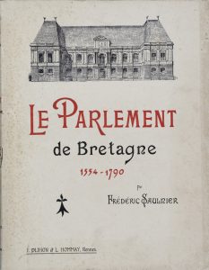 Le Parlement de Bretagne, 1554-1790. Répertoire alphabétique et biographique de tous les membres de la cour, accompagné de listes chronologiques et précédé d'une introduction historique. Rennes, Plihon et Homay, 1909, 2 vol. in-4, LXIII-892 p. ill., brochés (couv. défraichies, rousseurs).