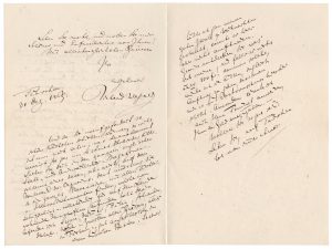 WAGNER (Richard) - (1813-1883). Correspondance en allemand de 12 lettres à son ami Edouard Schuré : Lettre autographe signée, Tribschen 31 décembre 1869, 2 pages 1/2 in-8. Wagner lui écrit que cette année a été la plus heureuse de sa vie...