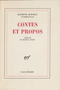 QUENEAU (Raymond). Contes et propos. Paris, Gallimard, 1981. In-8, broché, chemise, étui (Pierre Mercier).