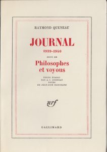 QUENEAU (Raymond). Journal 1939-1940 suivi de Philosophes et voyous. Paris, Gallimard, 1986. In-8, broché, chemise, étui (Pierre Mercier - 1988).