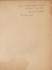 Édition originale de cette adaptation d'un poème indien. Un des 5 exemplaires du tirage de tête sur japon. Envoi autographe de l'auteur à Raymonde Linossier "Bibi la bibiste". On joint 6 volumes édités au Sans Pareil : MORAND (Paul). Poèmes. 1924. 1/800 vélin Lafuma. – APOLLINAIRE (Guillaume). Le Poète assassiné. 1927. – CENDRARS (Blaise). Feu le lieutenant Bringolf. 1930. – GOBINEAU (Comte de). Les Pléiades. 1921. – TINAN (Jean de). Penses-tu réussir ! 1921. 1/100 vergé rose. – HAMSUN (Knut). Pan. 1924. Exemplaire sur vélin Lafuma.
