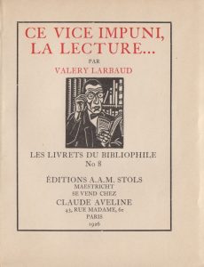 LARBAUD (Valery). Ce Vice impuni, la lecture... Maastricht, A.A.M. Stols, 1926. In-16, broché.