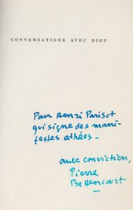 BETTENCOURT (Pierre). Conversations avec Dieu. Paris et Saint-Maurice d'Etelan, Bettencourt, 1948. In-8, broché.