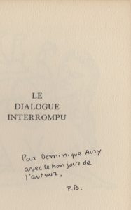 BETTENCOURT (Pierre). Le Dialogue interrompu. Saint-Pierre-Capelle, Lettera Amorosa, 1973. In-12, broché.