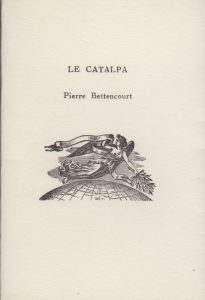 Le Catalpa. 1989. In-16. Édition originale tirée à 89 exemplaires. Les Anges de Dieu. 1990. In-12. Édition originale tirée à 71 exemplaires. Le Livre des invocations. 1991. Édition originale tirée à 89 exemplaires. Le Magicien. 2000. In-12. Édition originale tirée à 89 exemplaires. On joint : Séjour chez les Big-Nambas. L'Instant perpétuel, 1997. In-12, Édition originale tirée à 500 exemplaires, illustrée de savoureux dessins hors-texte de Bettencourt, récit d'un voyage en Océanie. – L'Homme million - Histoire naturelle de l'imaginaire - Après moi le soleil - Les Négriers jaunes. Bettencourt, 1967. 4 volumes tirés à 750 exemplaires sur vergé.
