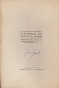 Tirage à 410 exemplaires, celui-ci sur vélin de Lana, signé à la justification par Genet.
