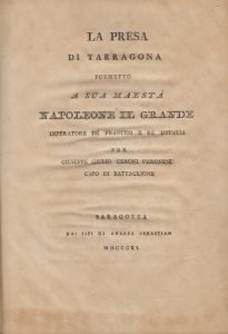 [NAPOLÉON]. CERRONI (Giuseppe Giulio). La Presa di Tarragona. Saragozza, Dai Tipi di Andrea Sebastian, 1811. In-8, basane brune, dos lisse orné de filets dorés, tranches dorées (Reliure de l'époque).