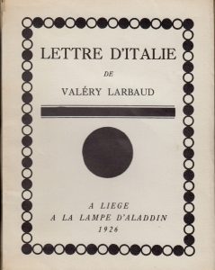 LARBAUD (Valery). Lettre d'Italie. Liège, À la Lampe d'Aladdin, 1926. Petit in-12, broché.