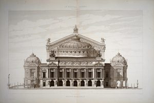 [PARIS]. GARNIER (Charles). Le Nouvel Opéra de Paris. Paris, Ducher et Cie, 1876-1881. 6 fascicules en 5 volumes in-4 brochés (Vol. I de texte) et un volume in-4 broché (Vol. II de texte), chemise et étui ; et un portefeuille in-plano, demi-veau...