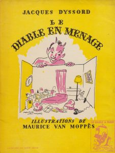 Édition originale publiée en 7 fascicules. Un des 1200 exemplaires sur chiffon Aravis du tirage de tête, réservé aux souscripteurs. La série, qui prend le diable comme sujet d'inspiration, devait comporter 13 fascicules, et fut interrompée par la guerre. Chaque livraison (la couverture de la chemise est toujours illustrée d'un dessin de Paul Colin) associe un écrivain à un artiste, et c'est une jolie réussite lorsque Mac Orlan est illustré par Chas Laborde (qui illustre également dans ces diableries le texte d'Elisabeth de Gramont). Le fascicule écrit par Violette Le Roy comprend 2 hors-texte qui n'existent pas dans l'édition ordinaire : une gravure de Vertès, beau portrait de Mademoiselle Chanel, et une gravure de Berthold Mann. Le dernier volume, signé par Soupault et Rebatet, d'une grande violence antisémite et antiparlementaire, contient un bandeau : "Interdit par le gouvernement Daladier, attention tirage très restreint". Notre exemplaire est bien complet du prospectus de 4 pages, annonçant la souscription et les noms des écrivains devant participer à cette "fantaisie en douze tableaux". L'ensemble a été préservé par une boîte de Pierre Mercier, réalisée en 1984, avec au dos une figure de diablotin en papier. L'emboîtage a un peu souffert ; papier du premier plat légèrement gondolé, bords de la boîte passés. Cet ensemble complet n'est pas courant.