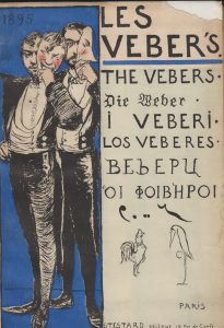 Éditions originales. Tout le talent des frères Veber, alliant satire, ironie et sens plus profonds. Ils se moquent aimablement du monde littéraire, les dessins et caricatures de Jean Veber sont saisissants : Zola, Schwob, Barrès, Goncourt, personne n'est épargné, y compris les auteurs eux-mêmes.