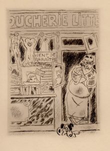 Première édition illustrée, au tirage limité à 110 exemplaires. Un des 60 vélin de Rives, illustré de 8 lithographies hors-texte de Gus Bofa, plus la couverture, coloriées au pochoir (rouge). Intéressant exemplaire comprenant deux hors-texte supplémentaires réservés aux tirages sur japon impérial et hollande : une lithographie, et l'eau-forte "Boucherie littéraire", très inspirée de Mac Orlan.