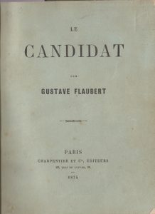 FLAUBERT (Gustave). Le Candidat. Comédie en quatre actes. Paris, Charpentier et Cie, 1874. In-16, bradel demi-percaline grise, dos orné d'un fleuron doré, pièce de titre grenat, non rogné, couverture (Reliure légèrement postérieure).