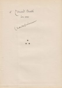 Édition originale. Tirage à 113 exemplaires numérotés, celui-ci un des 100 sur vélin blanc. Envoi autographe signé à Édouard Ducoté (1870-1929), écrivain proche des symbolistes. Il dirigea L'Ermitage de 1896 à 1906 et en fit une des grandes revues d'avant-garde. On joint, du même : Le Semeur de cendres. 1898-1900. Paris, Mercure de France, 1901. In-8, bradel demi-maroquin rouge, tête dorée, non rogné, couverture et dos (Lemardeley). Édition en partie originale. Un des 12 exemplaires numérotés sur hollande, seuls grands papiers avec 3 japons.