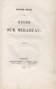 HUGO (Victor). Étude sur Mirabeau. Paris, Adolphe Guyot, Urbain Canel, 1834. In-8, broché.