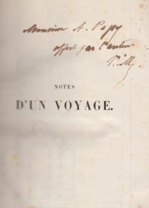 Édition originale. Elle renferme une planche repliée, légendée Plan et coupe de l'église de Conques (Aveyron). Envoi autographe paraphé de Mérimée à Monsieur A. Pepy. De la bibliothèque Thierry, à Étampes, avec cachet ex-libris. Une table des chapitres manuscrite a été copiée à l'époque sur le dernier feuillet blanc. Rares petites piqûres.