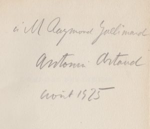 ARTAUD (Antonin). L'Ombilic des limbes. Paris, Éditions de la Nouvelle Revue Française, 1925. In-12, broché, étui et chemise.