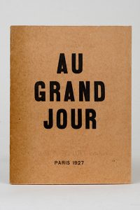 [BRETON (André), Paul ÉLUARD, Louis ARAGON, Pierre UNIK et Benjamin PÉRET]. Au grand jour. Paris, Éditions surréalistes, 1927. Plaquette in-12, agrafée, couverture imprimée.