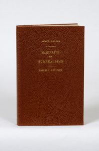 BRETON (André). Manifeste du Surréalisme. Poisson soluble. Paris, Sagittaire, Simon Kra, 1924. In-12, reliure souple en maroquin fauve, titre doré sur le premier plat, dos lisse muet, doublures et gardes de daim saumon, tête dorée, couverture et...