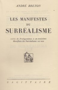 BRETON (André). Les Manifestes du Surréalisme, suivis de Prolégomènes à un troisième Manifeste du Surréalisme ou non. Paris, Éditions du Sagittaire, 1946. In-12, broché.