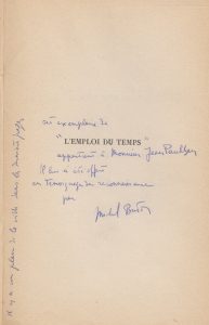 BUTOR (Michel). L'Emploi du temps. Paris, Minuit, 1956. In-8, broché, non coupé.