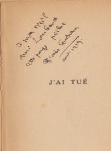 CENDRARS (Blaise). J'ai tué. Paris, Georges Crès et Cie, 1919. In-16, broché, chemise et étui (Boichot).