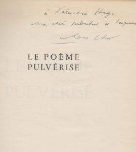 Édition originale. Un des 1200 exemplaires numérotés sur simili-japon du tirage courant. Envoi autographe signé de René Char à Valentine Hugo : ma chère Valentine de toujours.