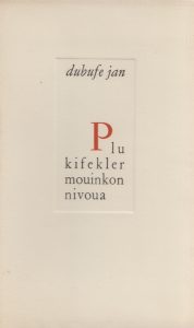 DUBUFFET (Jean). Dubufe Jan. Plu kifekler moinkon nivoua. Ler dutan. [Saint-Maurice-d’Ételan, Pierre Bettencourt, 1950]. In-12, broché, couverture imprimée rempliée.