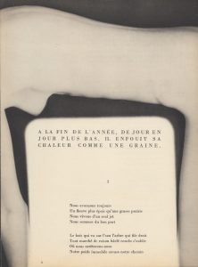 Édition originale ornée de 12 photographies de Man Ray. Le corps de Nush, nue, l’épouse de Paul Éluard, tirées en héliogravure et s’entremêlant à la typographie de Guy Levis Mano. Un treizième cliché orne la couverture. Exemplaire numéroté sur papier vélin teinté, sans défaut.