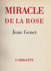 GENET (Jean). Miracle de la rose. [Lyon], L'Arbalète, 1946. In-4, cartonnage de toile beige de l'éditeur.