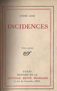 GIDE (André). Incidences. Paris, NRF, 1924. In-12, maroquin ébène janséniste, tête dorée, couverture et dos, étui bordé (Reliure postérieure).