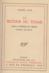 GIDE (André). Le Retour du Tchad, suite du Voyage au Congo. Carnets de route. Paris, NRF, 1928. Petit in-4, demi-maroquin havane avec coins, tête dorée, couverture et dos (Reliure de l'époque).