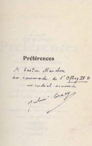 Nouvelle édition augmentée. Envoi autographe signé de Julien Gracq à l'historien Gaston Marchou, son camarade de l'Oflag IV D. Une lettre autographe signée au même, avec enveloppe adressée datée de 1978, accompagne le volume. Trace de moisissure et minimes déchirures au premier plat de couverture et aux quatre premiers feuillets.