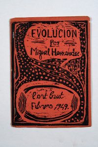 HERNANDEZ (Miguel). Evolución. Paris, L'Art brut, février 1949. In-12 de [16] ff., agrafé, couverture de papier rose illustrée.