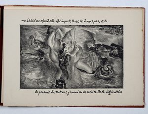 Édition originale tirée en fac-similé lithographié du manuscrit calligraphique de l’auteur et orné de 17 lithographies originales de Christine Boumeester et de Henri Goetz. Tirage à 115 exemplaires. Un des exemplaires numérotés sur papier vélin d’Arches (et non vergé).