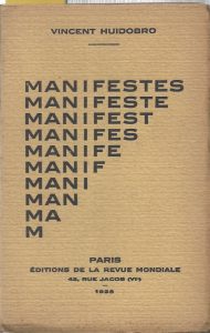HUIDOBRO (Vincent). Manifeste manifestes. Paris, La Revue mondiale (Imprimerie Union), 1925. In-12, broché, couverture imprimée.