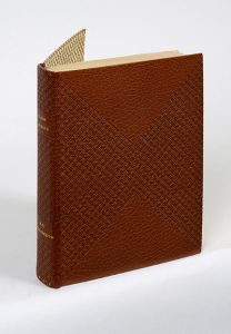 dos, dos lisse, doublures du même maroquin ornées d'un semé de petits carrés dorés, gardes de soie mordorée, tranches dorées sur témoins, couverture et dos, étui (E. & A. Maylander).