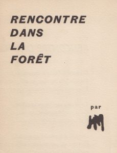 [MICHAUX (Henri)]. Rencontre dans la forêt. S.l.n.n., 1952. Un feuillet in-4 imprimé recto-verso et plié en quatre.